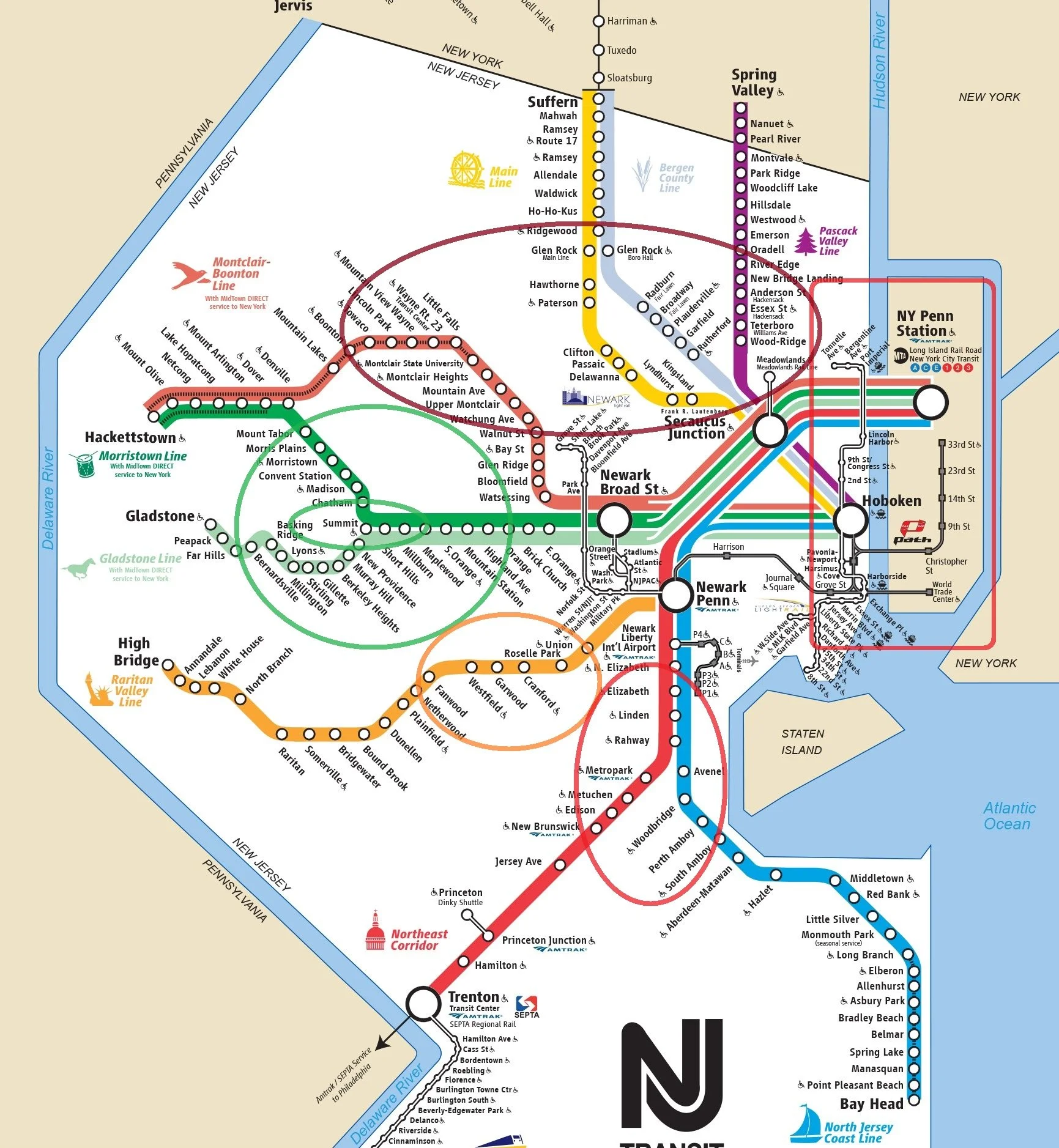 在新泽西生活的华人家庭,特别是中产家庭的两口子,一个配偶在NJ上班,而另一个配偶在纽约上班,这种状况很常见,那么平衡好两个人的上班通勤时间就比较重要。一般来说,在NJ上班开车在半小时以内很容易做到,但是通勤到纽约,特别是曼哈顿以及Midtown地区,就需要借助NJ Transit,也就是新泽西的公共铁路交通,这也是大家从铁路地图可以看到,在新泽西北部地区铁路网络更为发达,以确保泽西-纽约的一小时单程通勤。如果在泽西置业生活,而工作在纽约的话,除了考虑通勤时间,如果有小孩,还要考虑学区,以及房产保值这些因素,而NJ Transit铁路沿线则很好的反映了这些因素,接下来我们就分区来看这些不同区域的房产特点: