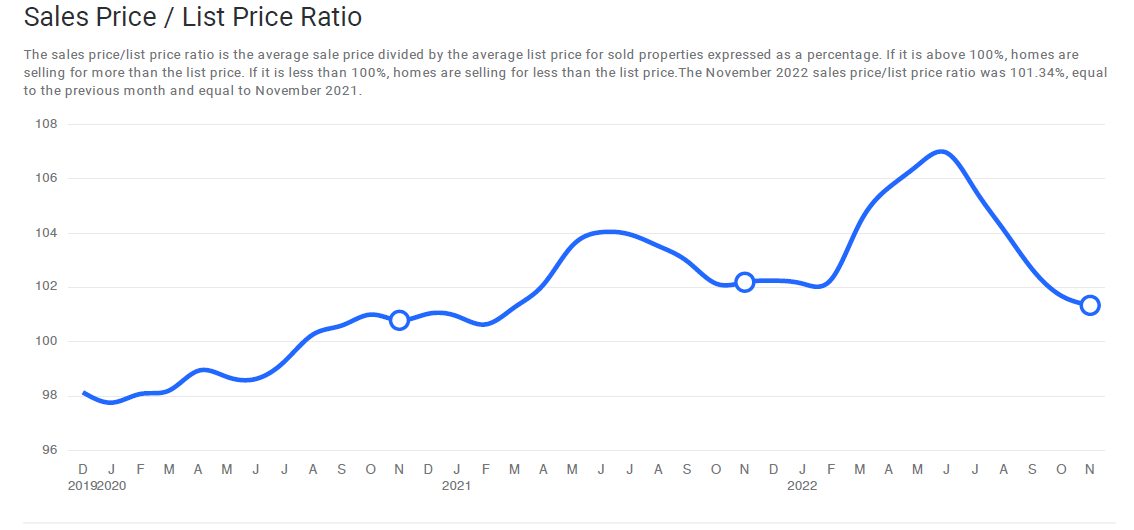 那么2023年,房价是否会下降呢?Coldwell Banker的研究机构预测2023年泽西的房屋价格不会有很大的波动,可能会在目前的基数上略微下降3%~5%,这个降幅比起过去两年中30%的增长来说,几乎可以忽略房价大幅下降的可能性。另外一个非常重要的参数就是成交价和挂牌价的比率,大于1代表有众多买家竞争,因此最后成交价高于挂牌价,也就是我们通常说的“卖方市场”;如果小于1,在95%左右则是市场正常时候的表现,意味着买家报价以及最终成交的时候会低于挂牌价,也就是我们俗称的“买方市场”。目前这个比率依然大于1,但最近几个月来有明显向下的趋势,因此我们可以预测,在未来几个月泽西的房产市场会恢复到正常的95%~100%的区间,也就是2023年很可能是“买方市场”。从卖方市场到买方市场的转变,取决于房屋的供应量以及购房者的数量,也就是供求(Deman Vs Supply)是否能够达到某种程度的平衡。